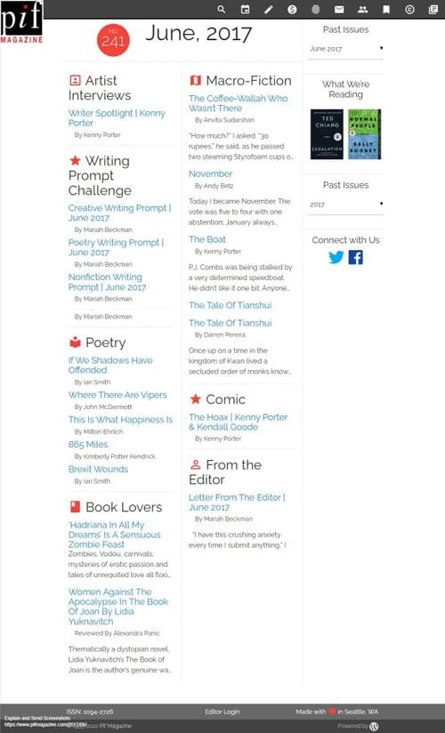 Read an example issue here: https://www.pifmagazine.com/2017/06/letter-from-the-editor-may-2017/